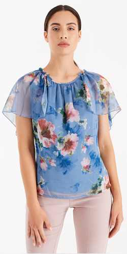 Blusa Stampa Floreale in Creponne