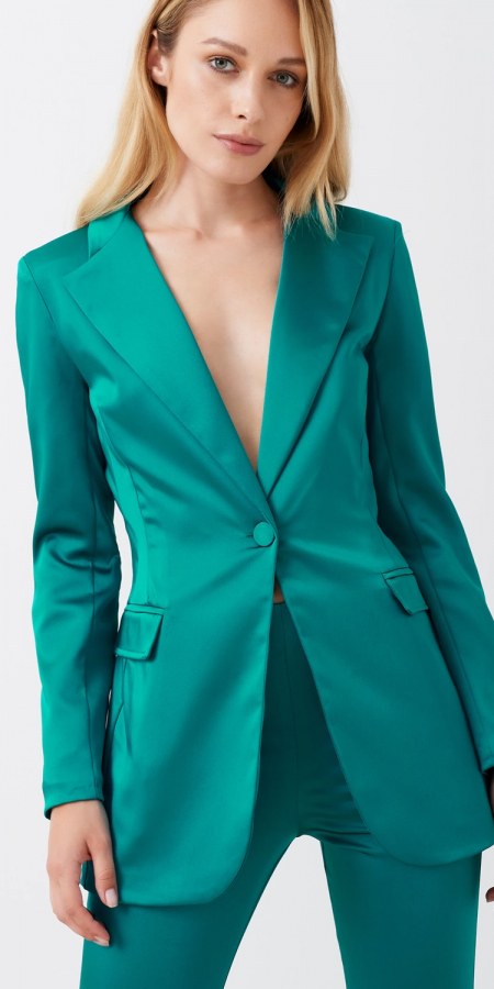 Giacca in raso strutturato color verde laguna