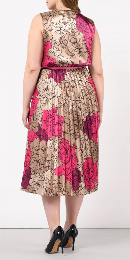 Abito Curvy in Raso Stampa Floreale con Gonna Plissè var