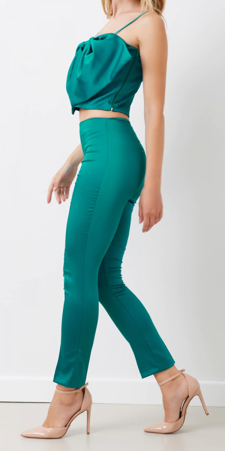 Pantaloni in raso strutturato color verde laguna