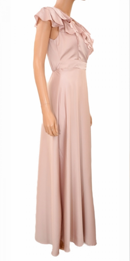 Abito Lungo in Raso con rouches rosa 2