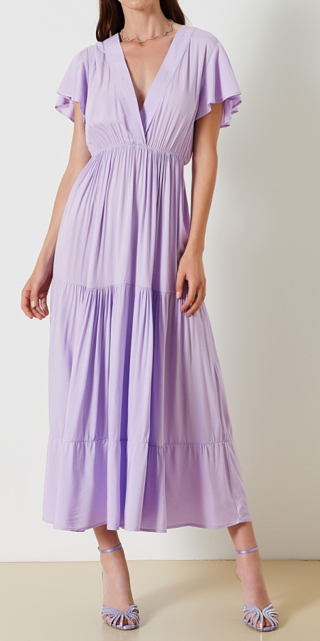 Abito Lungo a Balze in Viscosa Lenzing ECOVERO ™