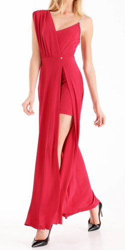 Abito Asimmetrico con Pannello color Ciclamino