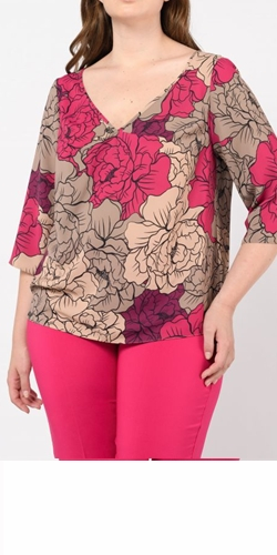 Blusa Curvy in Raso Mano Pesca Stampa Floreale 2