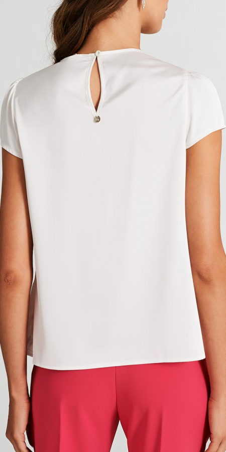 Blusa Boxy con Dettaglio Gioiello Bianco Avorio 1