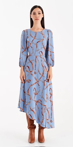 Abito Asimmetrico Stampato Azzurro