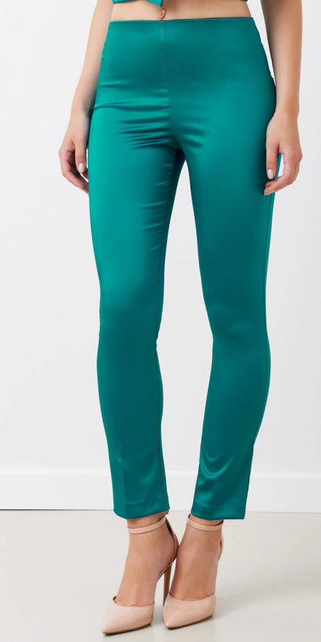 Pantaloni in raso strutturato color verde laguna 1