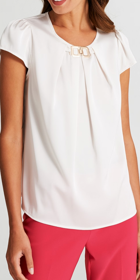 Blusa Boxy con Dettaglio Gioiello Bianco Avorio