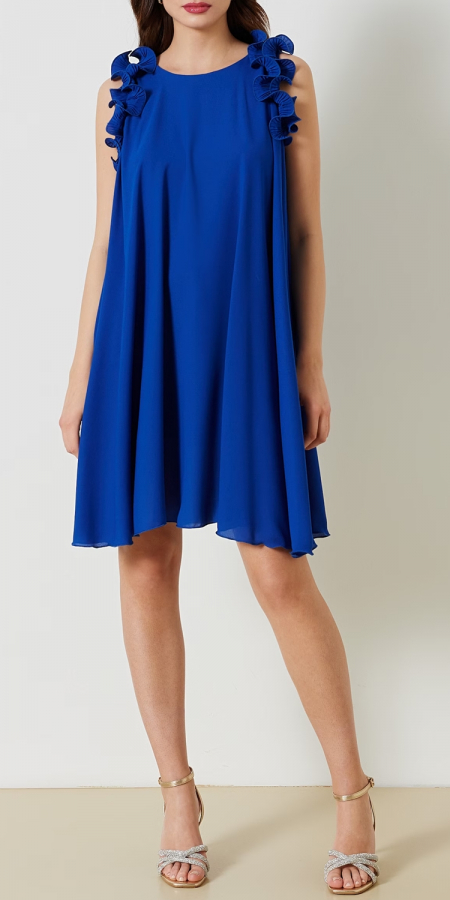 Abito Trapezio con Rouches Plissé 1 bluette