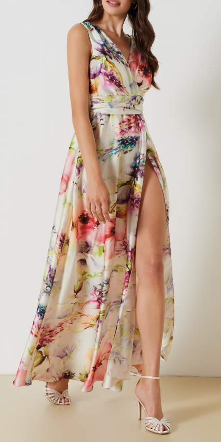 Abito Lungo Floreale in Raso 1