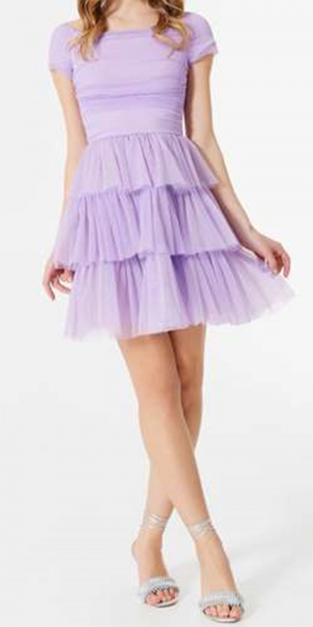 Abito in tulle con Balze color Lilla 1