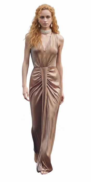 abito 125065 lungo lurex bronzo