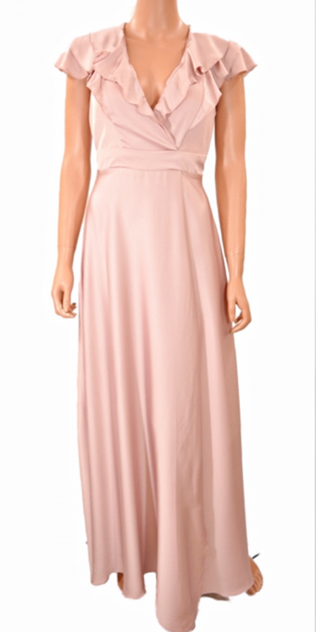 Abito Lungo in Raso con rouches rosa 1