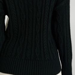 Maglione a trecce di colore nero, con inserto handmade di cordoncino bianco laterale che ricrea un effetto frangia. Questo maglione è realizzato in parte con lana d'alpaca che garantisce al capo morbidezza e un calore avvolgente. La modella, alta 1,74, indossa la taglia S. Questo prodotto è interamente made in Italy, garantendo la qualità e l'artigianalità italiane.